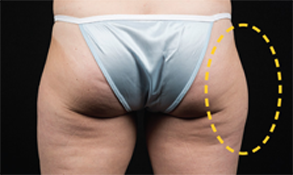 Ici, l’élément clinique est la présence de dépressions, de 1 ou 2 centimètres de large, situées généralement au niveau de la face postérieure des fesses et des cuisses. Cette anomalie est en rapport avec une attraction des fibres vers le bas, due à une rétraction des cloisons collagéniques situées à la profondeur de la peau. Le traitement consiste logiquement à couper ces cloisons qui tirent vers les bas, et créent ainsi l’aspect de capitons. Il n’y a aucune technique chirurgicale proposée pour la cellulite à capitons.